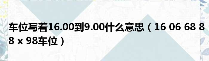 导读 大家好,今天小六子来为大家解答以下的问题,关于车位写着16 00到9 00什么意思,16 06 68 88 x 98车位这个很多人还不知道,现在让我们