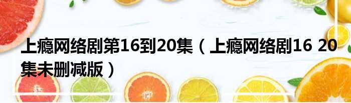 上瘾网络剧第16到20集(上瘾网络剧16 20集未删减版)