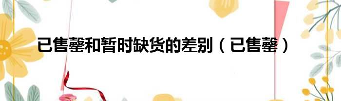 导读 大家好,今天小六子来为大家解答以下的问题,关于已售罄和暂时缺货的差别,已售罄这个很多人还不知道,现在让我们一起来看看吧!1、意思:已