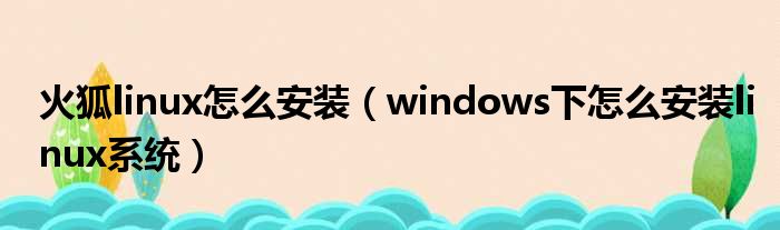 火狐linux怎么安装(windows下怎么安装linux系统)