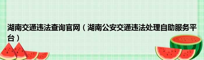 导读 大家好,今天小六子来为大家解答以下的问题,关于湖南交通违法查询官网,湖南公安交通违法处理自助服务平台这个很多人还不知道,现在让我们