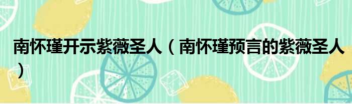 导读 大家好,今天小六子来为大家解答以下的问题,关于南怀瑾开示紫薇圣人,南怀瑾预言的紫薇圣人这个很多人还不知道,现在让我们一起来看看吧!1