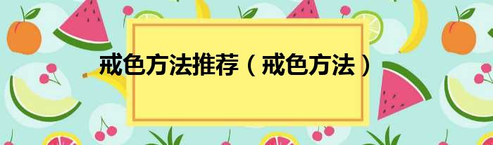 戒色方法推荐(戒色方法)