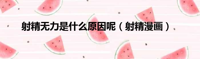 导读 大家好,今天小六子来为大家解答以下的问题,关于射精无力是什么原因呢,射精漫画这个很多人还不知道,现在让我们一起来看看吧!1、动漫:《