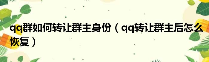导读 大家好,今天小六子来为大家解答以下的问题,关于qq群如何转让群主身份,qq转让群主后怎么恢复这个很多人还不知道,现在让我们一起来看看吧