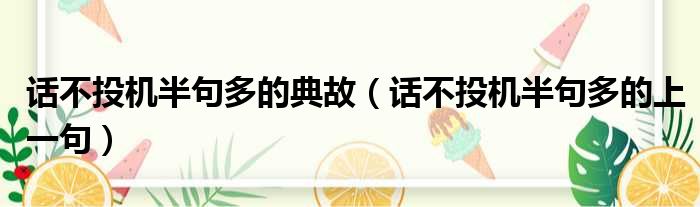 话不投机半句多的典故(话不投机半句多的上一句)