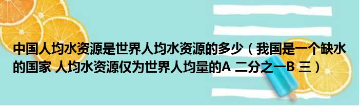 中国人均水资源是世界人均水资源的多少(我国是一个缺水的国家 人均水资源仅为世界人均量的A 二分之一B 三)
