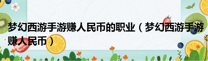 梦幻西游手游赚人民币的职业(梦幻西游手游赚人民币)