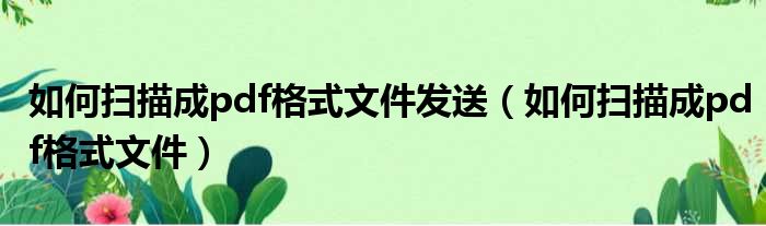 如何扫描成pdf格式文件发送(如何扫描成pdf格式文件)