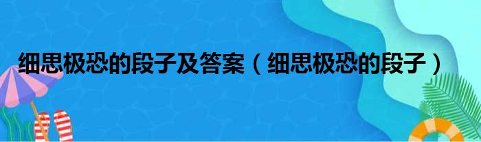 导读 大家好,今天小六子来为大家解答以下的问题,关于细思极恐的段子及答案,细思极恐的段子这个很多人还不知道,现在让我们一起来看看吧!1、转