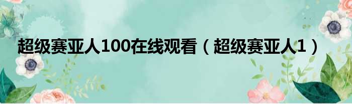 导读 大家好,今天小六子来为大家解答以下的问题,关于超级赛亚人100在线观看,超级赛亚人1这个很多人还不知道,现在让我们一起来看看吧!1、超级