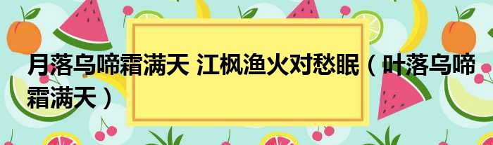 月落乌啼霜满天 江枫渔火对愁眠(叶落乌啼霜满天)