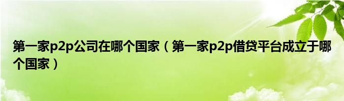 导读 大家好,今天小六子来为大家解答以下的问题,关于第一家p2p公司在哪个国家,第一家p2p借贷平台成立于哪个国家这个很多人还不知道,现在让我