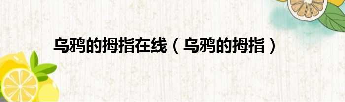 大家好,今天小六子来为大家解答以下的问题,关于乌鸦的拇指在线,乌鸦的拇指这个很多人还不知道,现在让我们一起来看看吧!