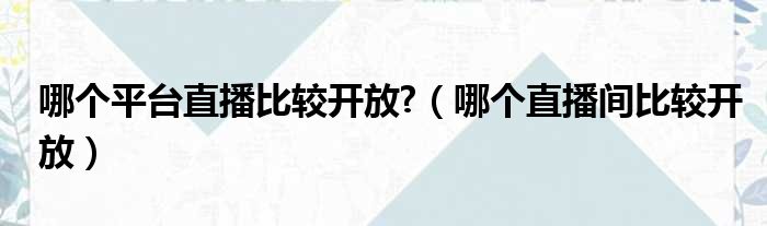 哪个平台直播比较开放?(哪个直播间比较开放)
