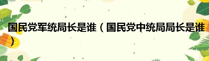 导读 大家好,今天小六子来为大家解答以下的问题,关于国民党军统局长是谁,国民党中统局局长是谁这个很多人还不知道,现在让我们一起来看看吧!1
