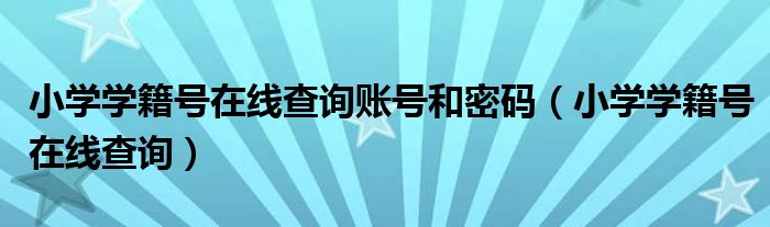 小学学籍号在线查询账号和密码(小学学籍号在线查询)