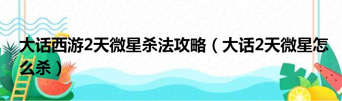 大话西游2天微星杀法攻略(大话2天微星怎么杀)