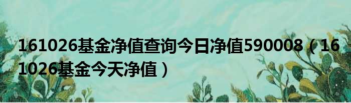 导读 大家好,今天小六子来为大家解答以下的问题,关于161026基金净值查询今日净值590008,161026基金今天净值这个很多人还不知道,现在让我们一