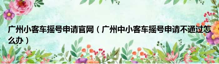 导读 大家好,今天小六子来为大家解答以下的问题,关于广州小客车摇号申请官网,广州中小客车摇号申请不通过怎么办这个很多人还不知道,现在让我