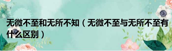 无微不至和无所不知(无微不至与无所不至有什么区别)