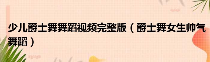 大家好,今天小六子来为大家解答以下的问题,关于少儿爵士舞舞蹈视频完整版,爵士舞女生帅气舞蹈这个很多人还不知道,现在让我们一起来看看吧!