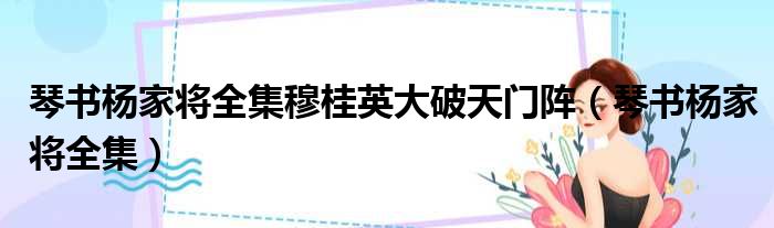 导读 大家好,今天小六子来为大家解答以下的问题,关于琴书杨家将全集穆桂英大破天门阵,琴书杨家将全集这个很多人还不知道,现在让我们一起来看