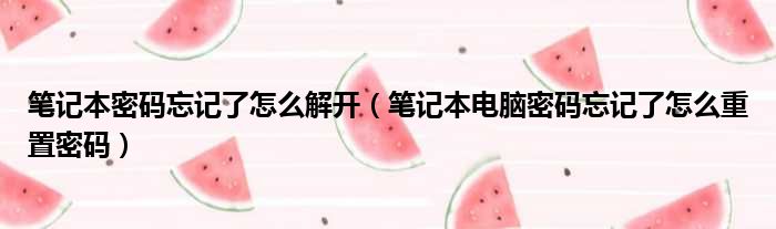 笔记本密码忘记了怎么解开(笔记本电脑密码忘记了怎么重置密码)
