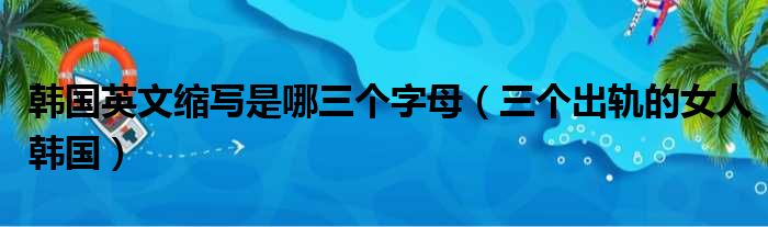 导读 大家好,今天小六子来为大家解答以下的问题,关于韩国英文缩写是哪三个字母,三个出轨的女人韩国这个很多人还不知道,现在让我们一起来看看
