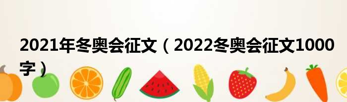 2021年冬奥会征文(2022冬奥会征文1000字)