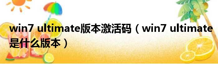win7 ultimate版本激活码(win7 ultimate是什么版本)