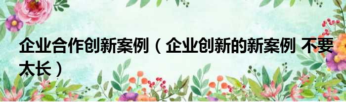 大家好,今天小六子来为大家解答以下的问题,关于企业合作创新案例,企业创新的新案例 不要太长这个很多人还不知道,现在让我们一起来看看吧!