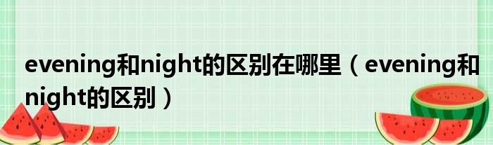 导读 大家好,今天小六子来为大家解答以下的问题,关于evening和night的区别在哪里,evening和night的区别这个很多人还不知道,现在让我们一起来
