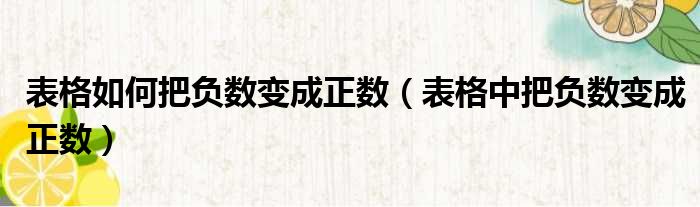 导读 大家好,今天小六子来为大家解答以下的问题,关于表格如何把负数变成正数,表格中把负数变成正数这个很多人还不知道,现在让我们一起来看看