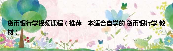货币银行学视频课程(推荐一本适合自学的 货币银行学 教材)