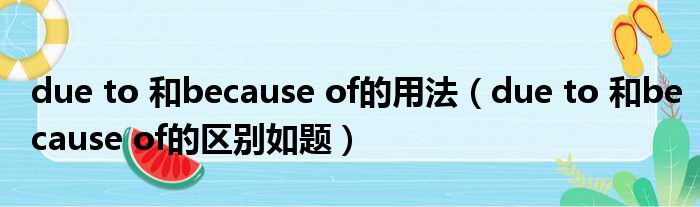 导读 大家好,今天小六子来为大家解答以下的问题,关于due to 和because of的用法,due to 和because of的区别如题这个很多人还不知道,现