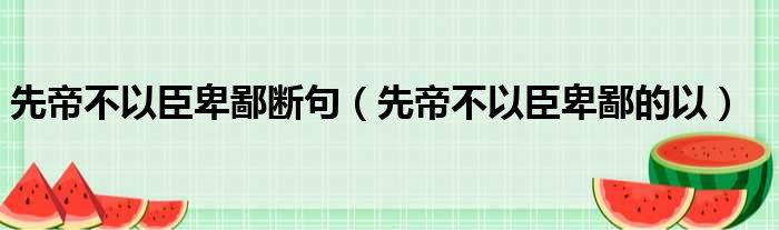 先帝不以臣卑鄙断句(先帝不以臣卑鄙的以)
