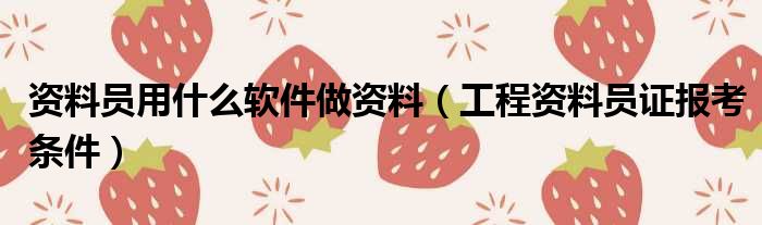 导读 大家好,今天小六子来为大家解答以下的问题,关于资料员用什么软件做资料,工程资料员证报考条件这个很多人还不知道,现在让我们一起来看看