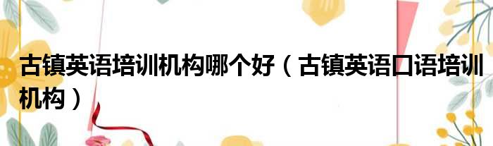 导读 大家好,今天小六子来为大家解答以下的问题,关于古镇英语培训机构哪个好,古镇英语口语培训机构这个很多人还不知道,现在让我们一起来看看