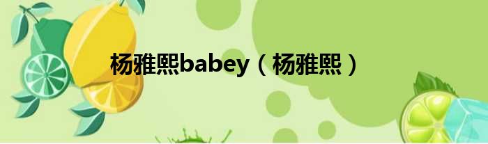 大家好,今天小六子来为大家解答以下的问题,关于杨雅熙babey,杨雅熙这个很多人还不知道,现在让我们一起来看看吧!