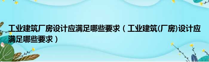 工业建筑厂房设计应满足哪些要求(工业建筑(厂房)设计应满足哪些要求)