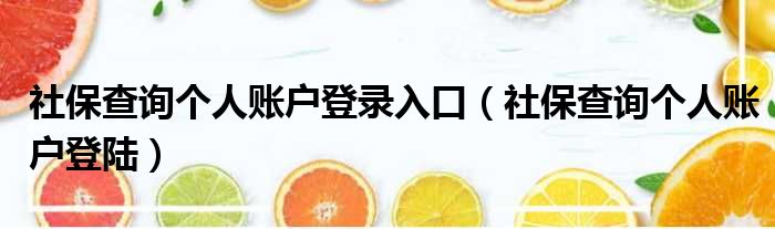 导读 大家好,今天小六子来为大家解答以下的问题,关于社保查询个人账户登录入口,社保查询个人账户登陆这个很多人还不知道,现在让我们一起来看...