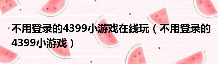 不用登录的4399小游戏在线玩(不用登录的4399小游戏)