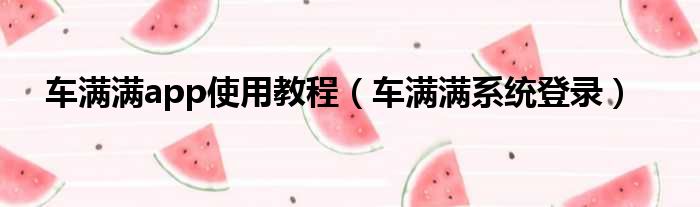 导读 大家好,今天小六子来为大家解答以下的问题,关于车满满app使用教程,车满满系统登录这个很多人还不知道,现在让我们一起来看看吧!1、保证...