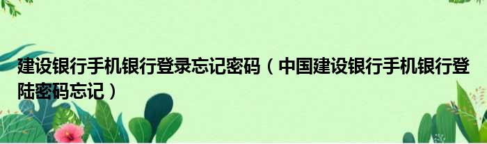 建设银行手机银行登录忘记密码(中国建设银行手机银行登陆密码忘记)