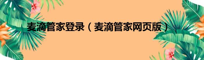 麦滴管家登录(麦滴管家网页版)
