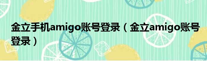 导读 大家好,今天小六子来为大家解答以下的问题,关于金立手机amigo账号登录,金立amigo账号登录这个很多人还不知道,现在让我们一起来看看吧!1...