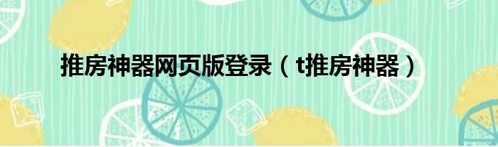 大家好,今天小六子来为大家解答以下的问题,关于推房神器网页版登录,t推房神器这个很多人还不知道,现在让我们一起来看看吧!