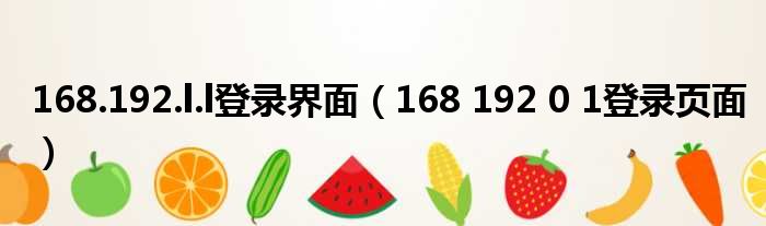 168.192.l.l登录界面(168 192 0 1登录页面)