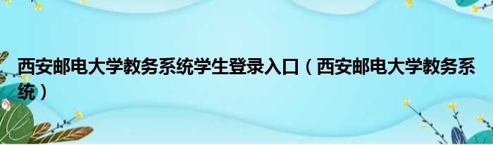 西安邮电大学教务系统学生登录入口(西安邮电大学教务系统)